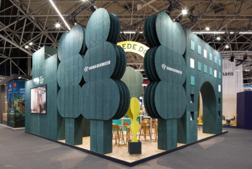 In every stand design, we prioritize reuse, material selection, and transport efficiency. We use PEFC-certified wood and water-based paints, and operate our own electric vehicle fleet. This way, your presentation remains impactful and responsible. A well-designed stand can often be reused for years, so you don’t need to replace it after every event!